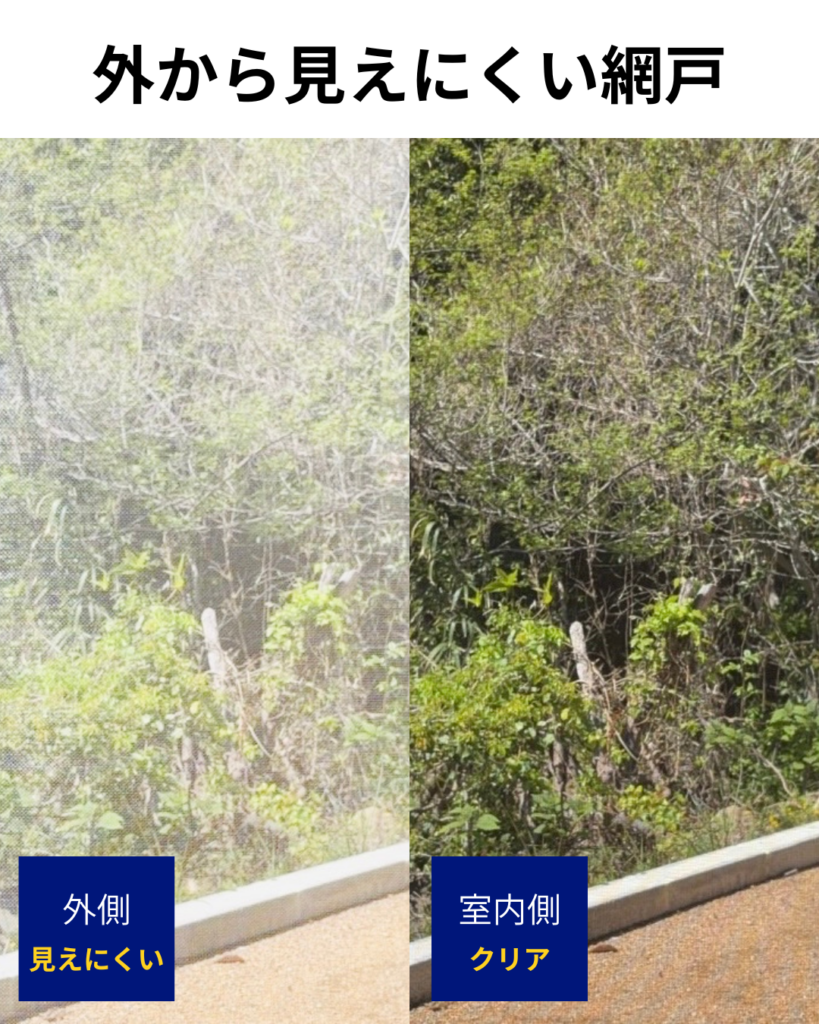 外からの視線が気になるとのことで、目隠しタイプの網戸へ張替えを行いました。